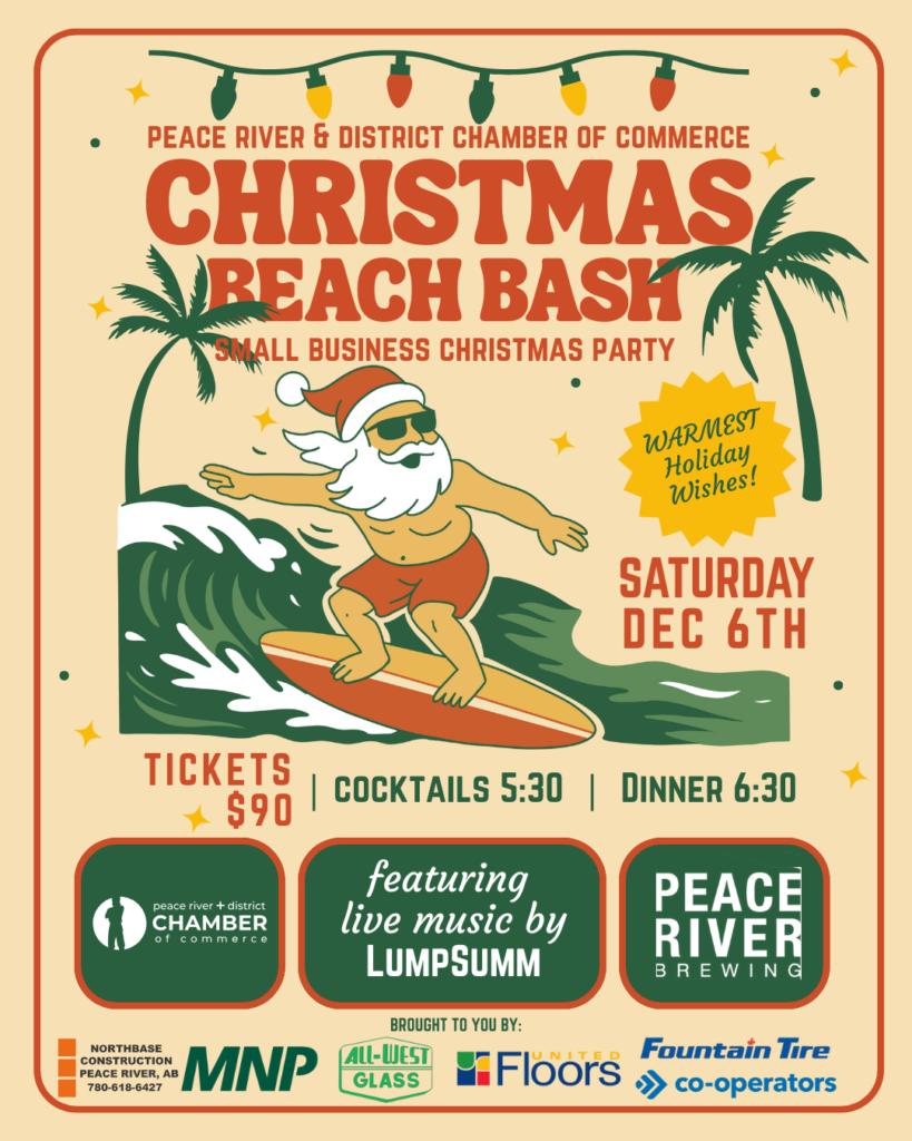 Tickets are $90 – treat your team to a stress-free Christmas party that brings the beach to the brewery! email manger@peaceriverchamber.com or use the link below to get your tickets today!!!