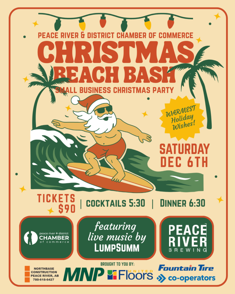 Tickets are $90 – treat your team to a stress-free Christmas party that brings the beach to the brewery! email manger@peaceriverchamber.com or use the link below to get your tickets today!!!